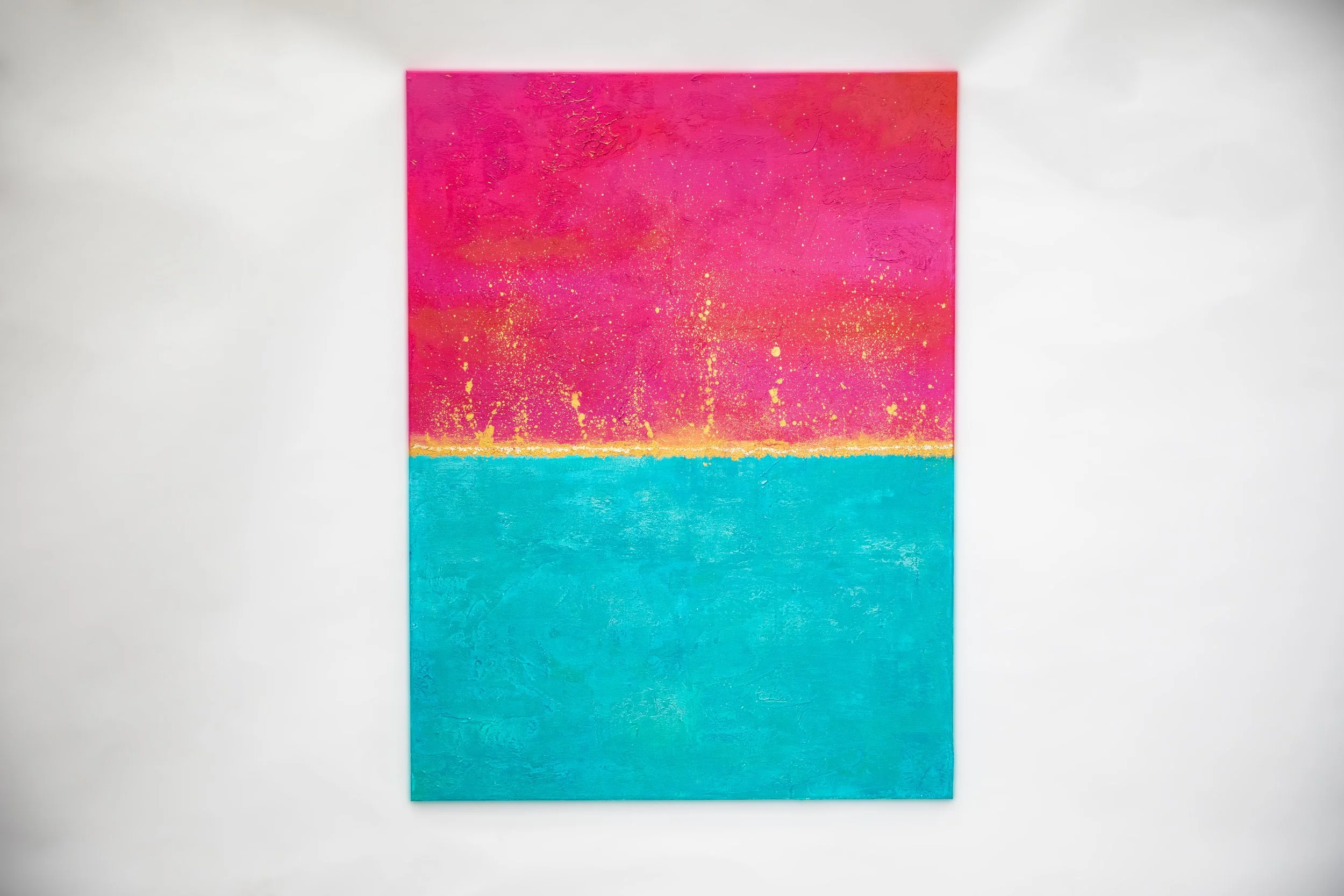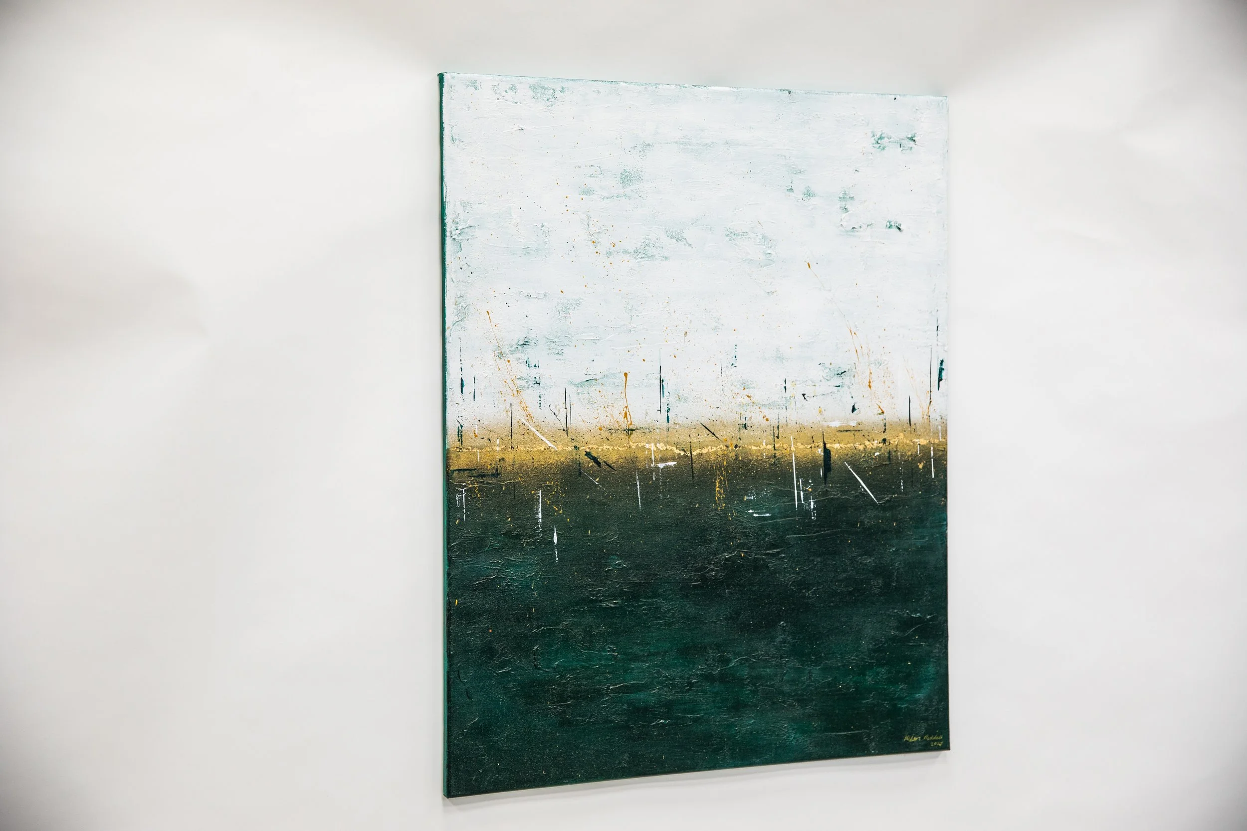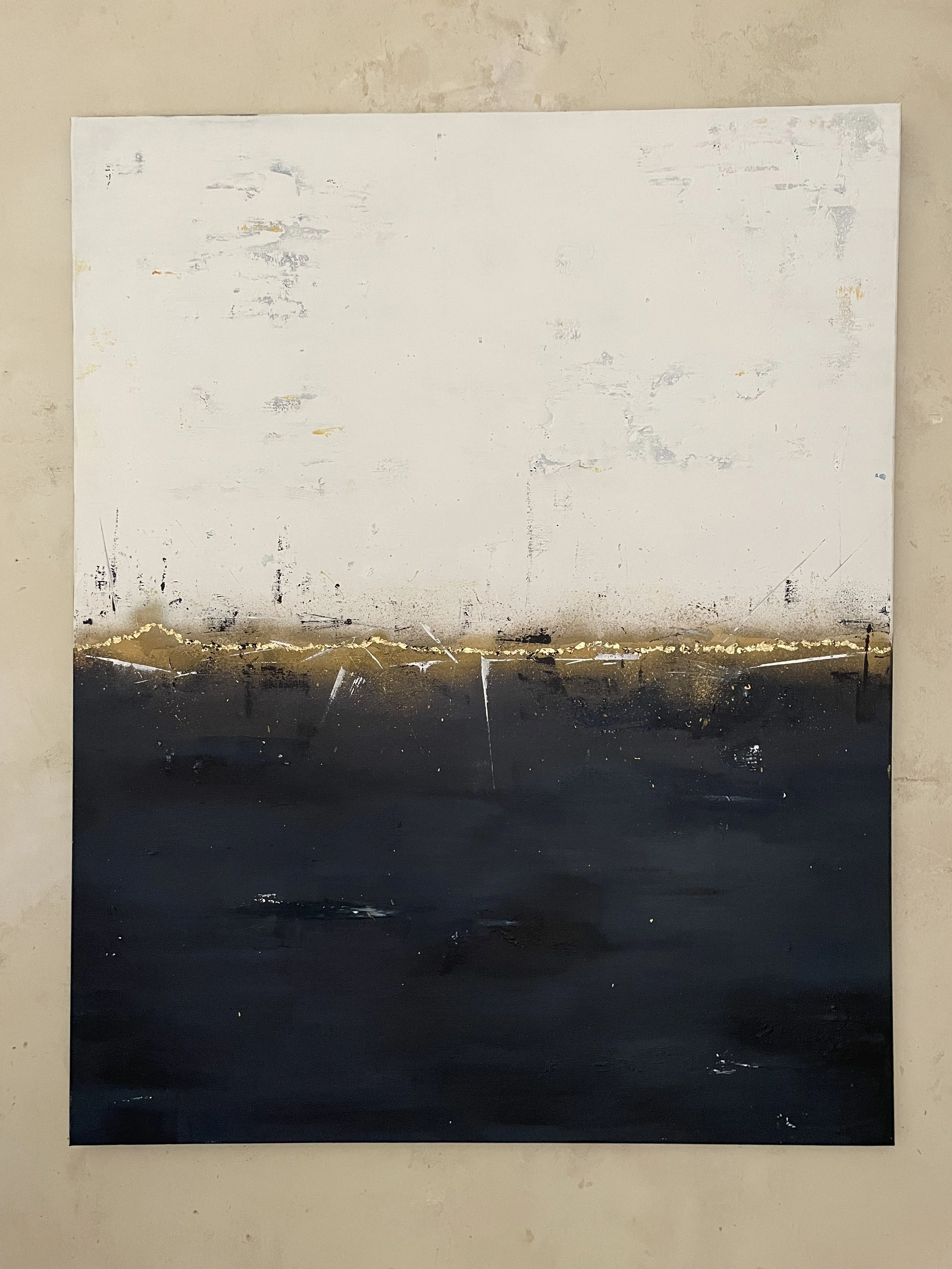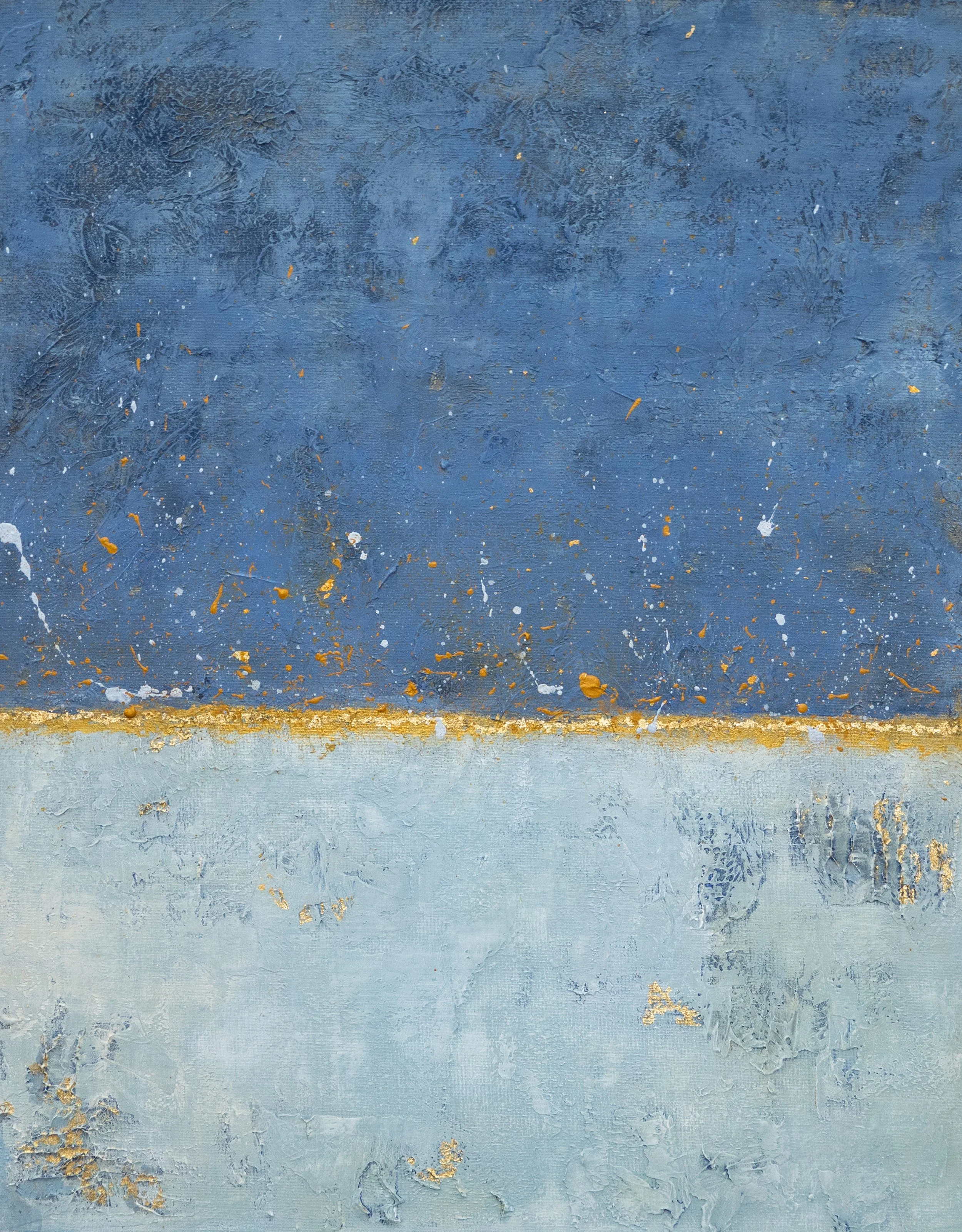 Sometimes when looking at a painting, you get the urge to reach out and touch it; to feel the texture, the layered paint strokes beneath your fingertips and that’s the case with this collection. Exploring depth and the richness of colour, again the sea and sky inspired me. I varied the colour palette depending on my mood, hoping to ignite the feelings of reflective contentment that I had when painting. In some paintings I’m transported to hot sun kissed summer days at the beach, in others I’m lost looking at a stormy sea, mesmerised by the repetitive sound of waves crashing on the shore.