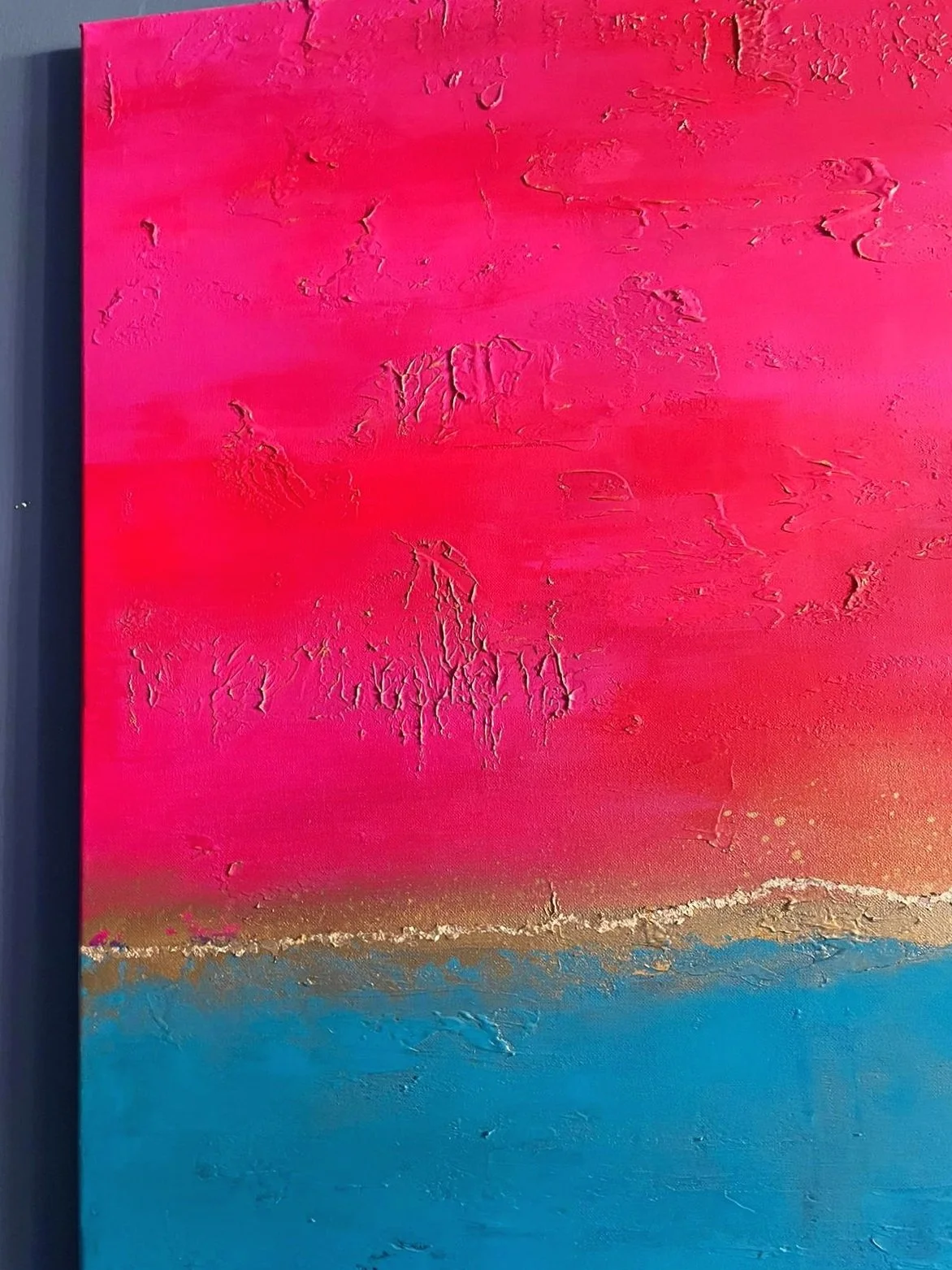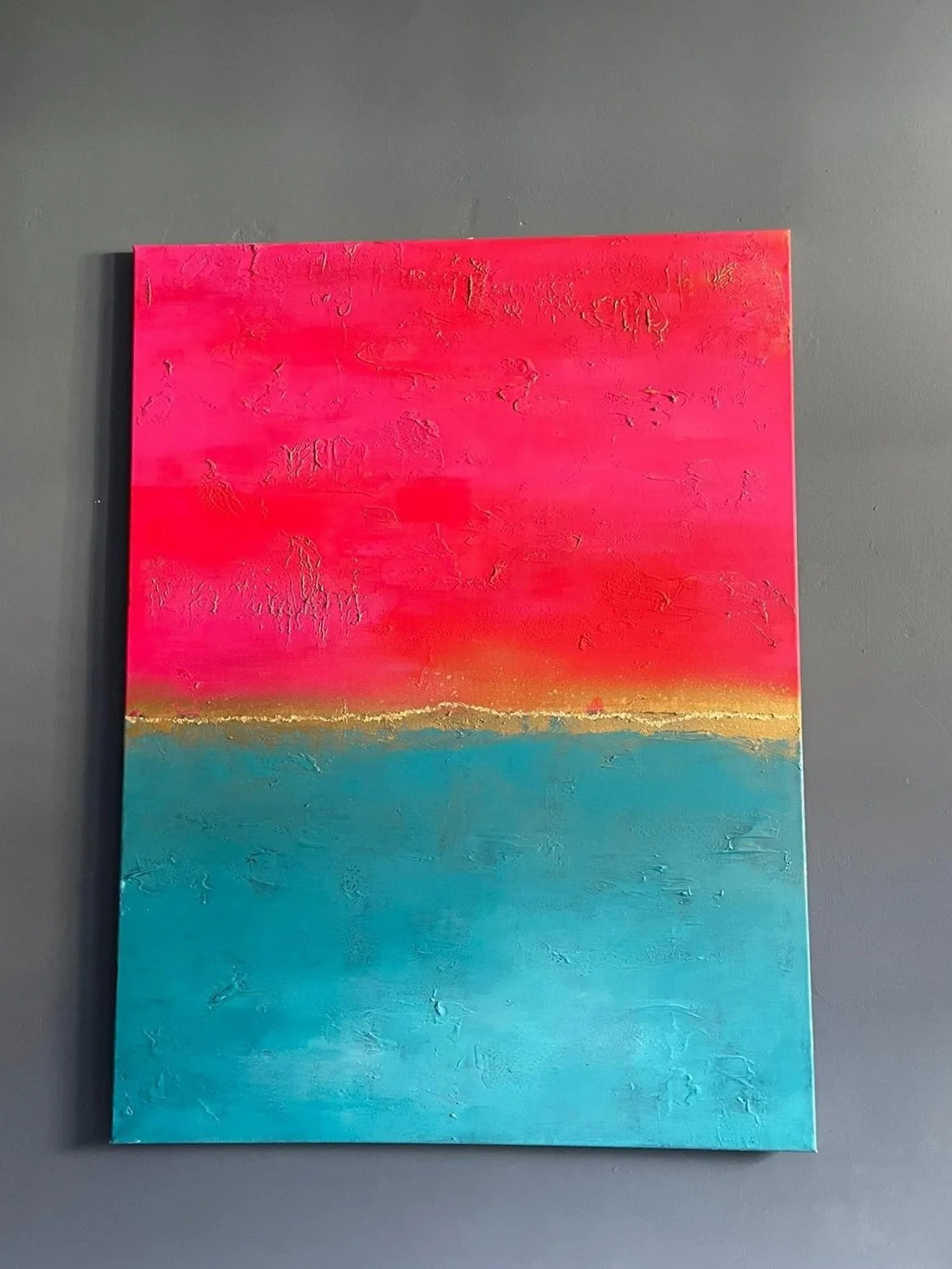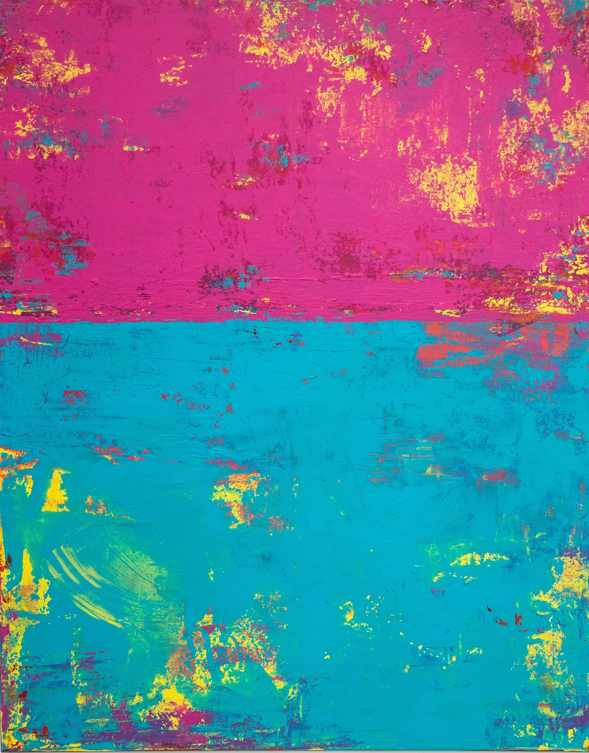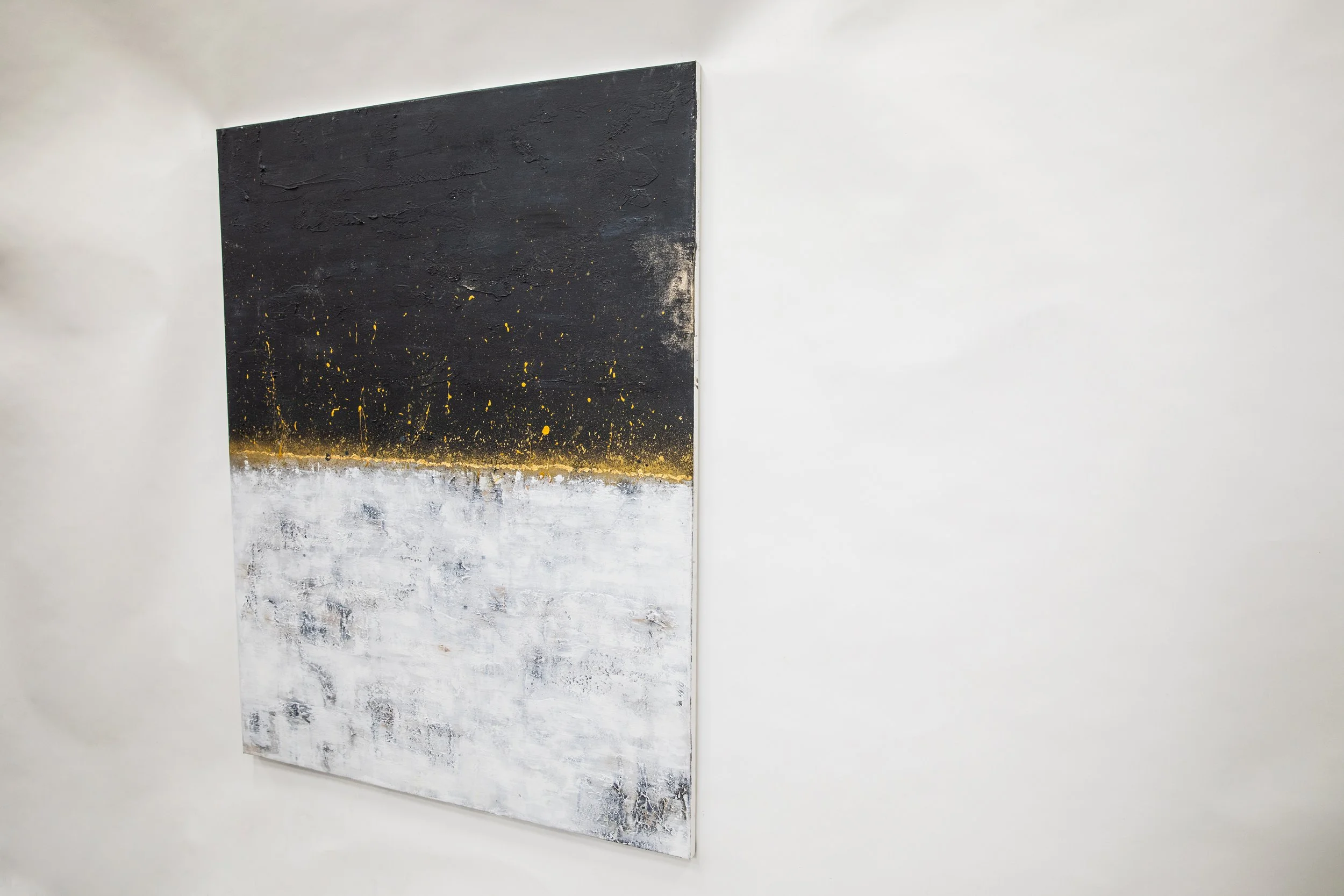 Sometimes when looking at a painting, you get the urge to reach out and touch it; to feel the texture, the layered paint strokes beneath your fingertips and that’s the case with this collection. Exploring depth and the richness of colour, again the sea and sky inspired me. I varied the colour palette depending on my mood, hoping to ignite the feelings of reflective contentment that I had when painting. In some paintings I’m transported to hot sun kissed summer days at the beach, in others I’m lost looking at a stormy sea, mesmerised by the repetitive sound of waves crashing on the shore.