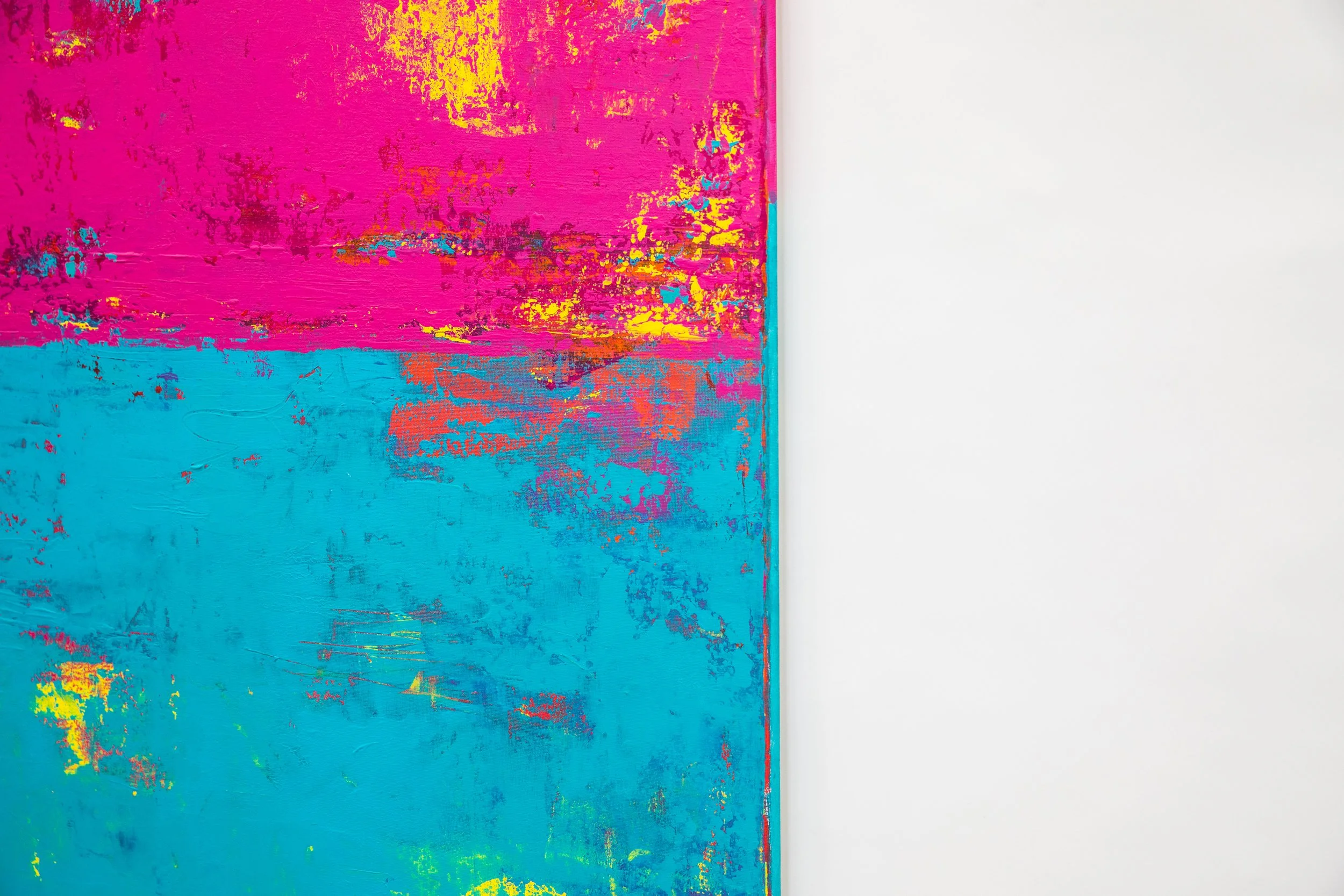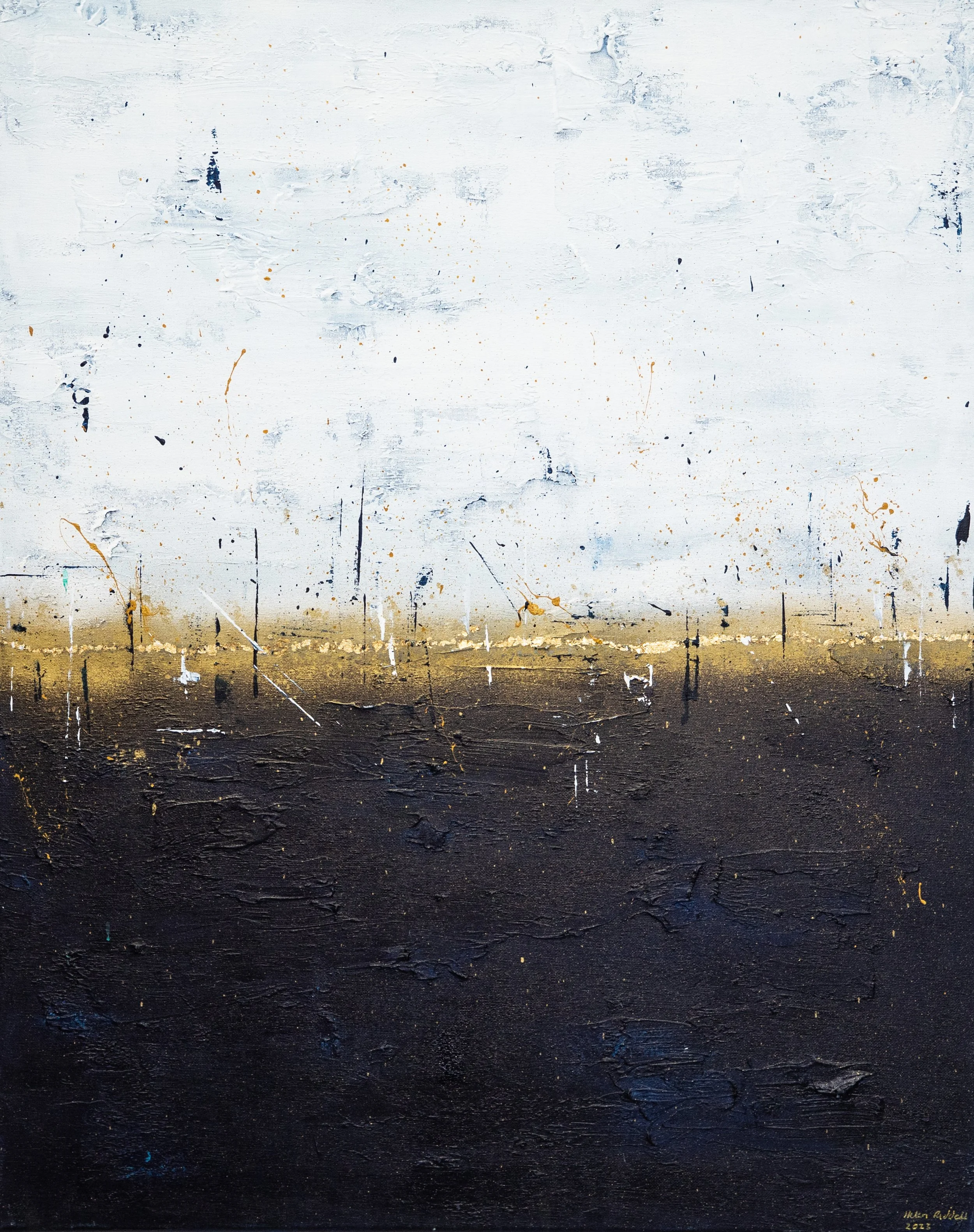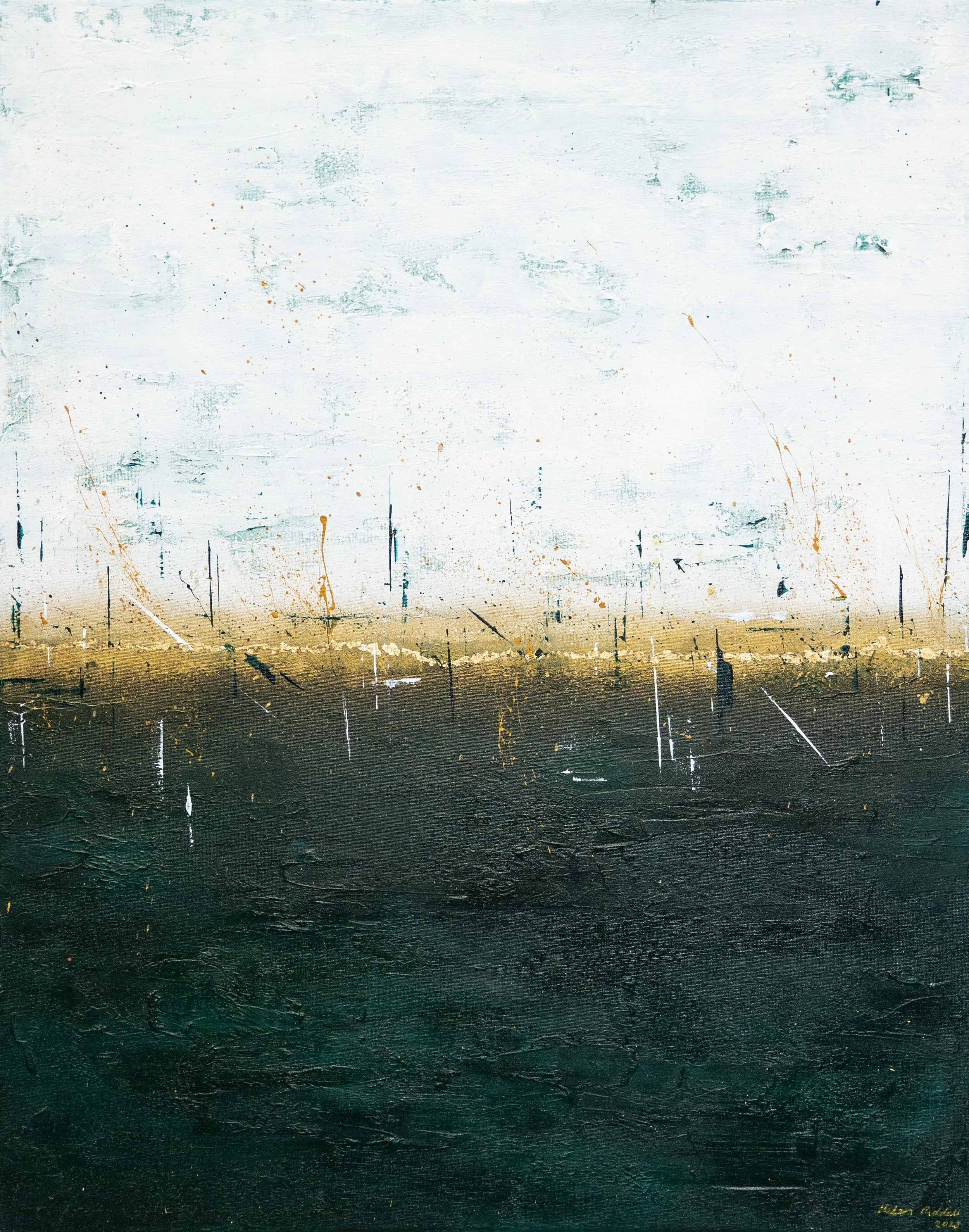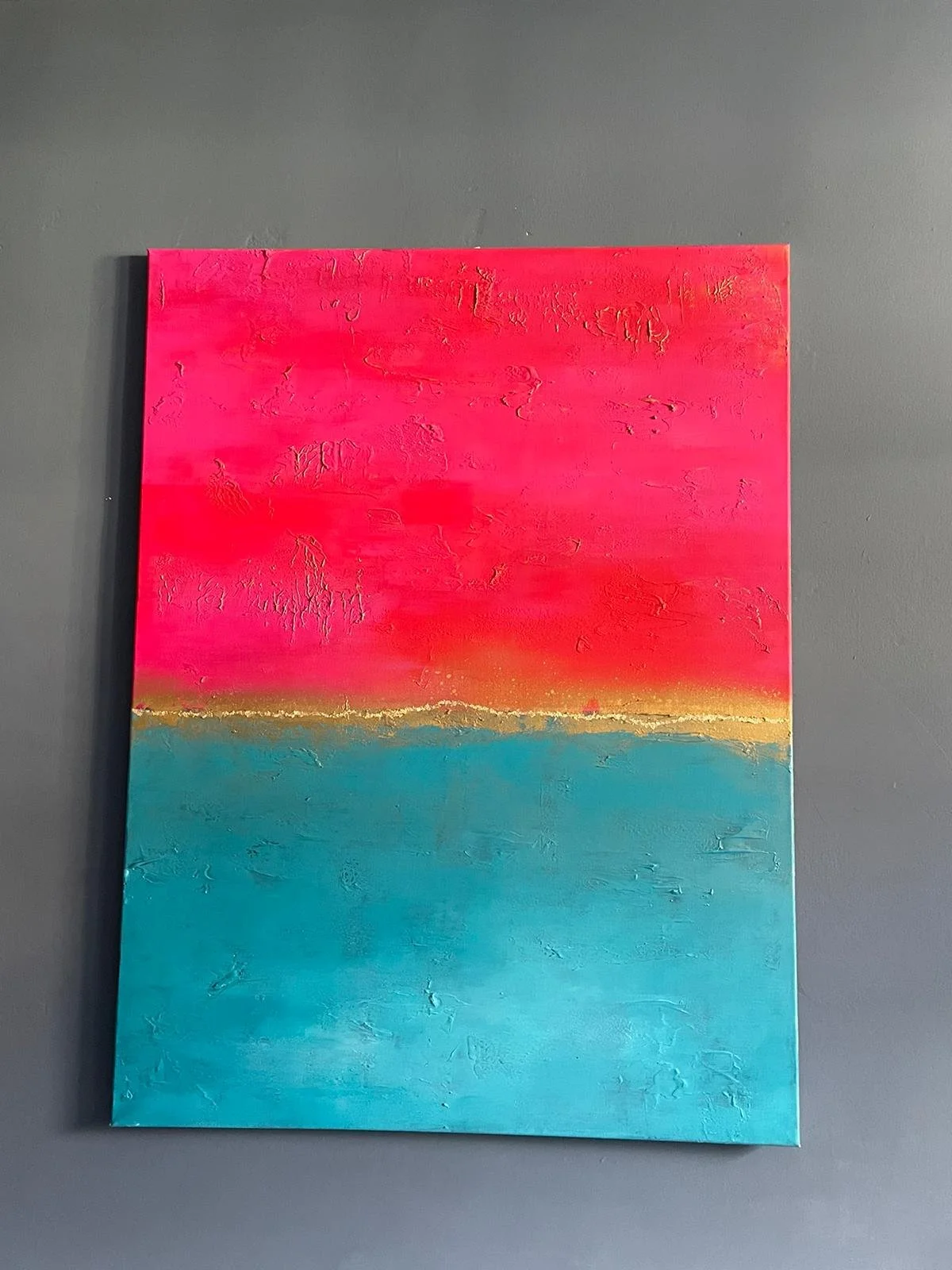 Sometimes when looking at a painting, you get the urge to reach out and touch it; to feel the texture, the layered paint strokes beneath your fingertips and that’s the case with this collection. Exploring depth and the richness of colour, again the sea and sky inspired me. I varied the colour palette depending on my mood, hoping to ignite the feelings of reflective contentment that I had when painting. In some paintings I’m transported to hot sun kissed summer days at the beach, in others I’m lost looking at a stormy sea, mesmerised by the repetitive sound of waves crashing on the shore.
